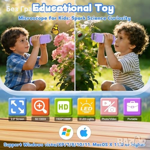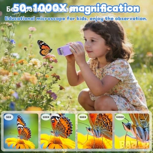 Детски дигитален микроскоп с 50X–1000X увеличение за наблюдение на растения, насекоми, монети, марки и влакна