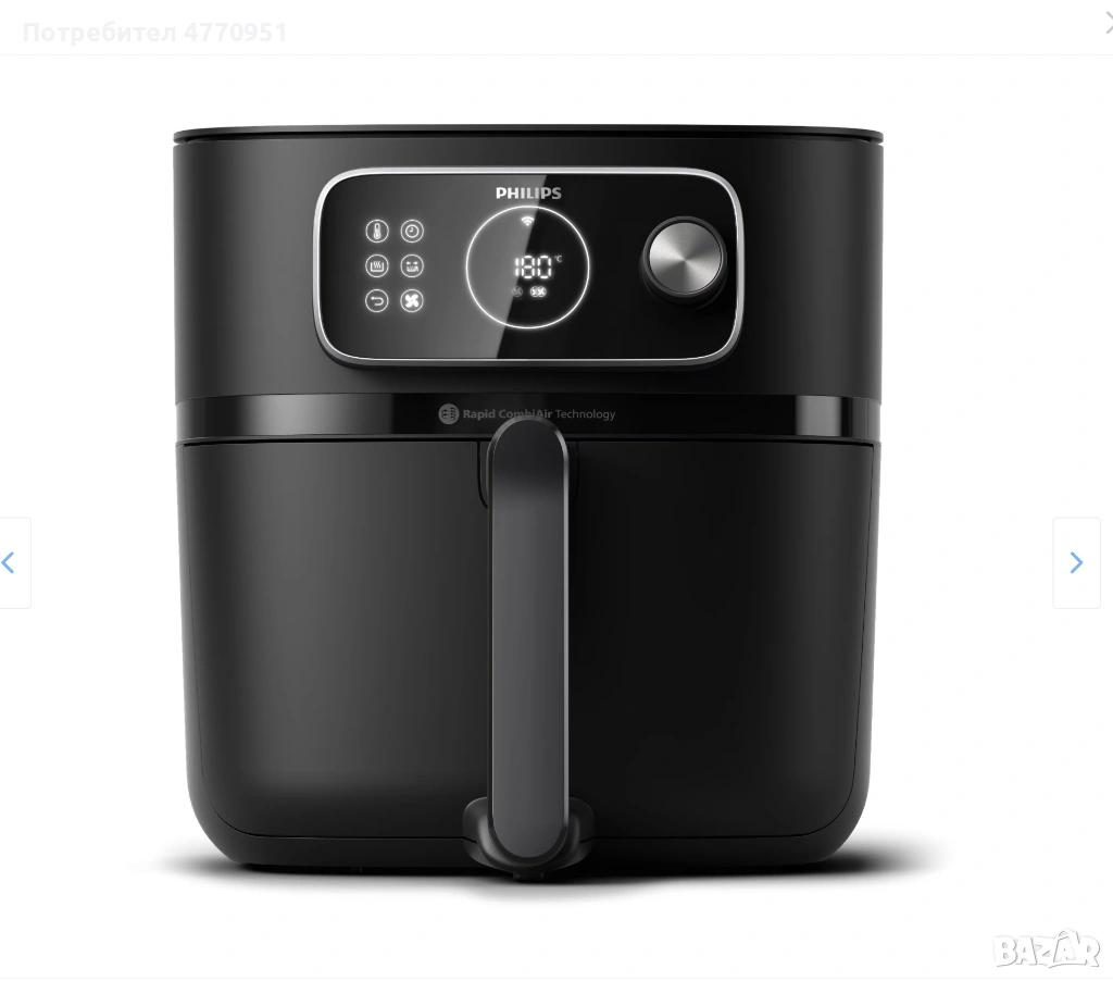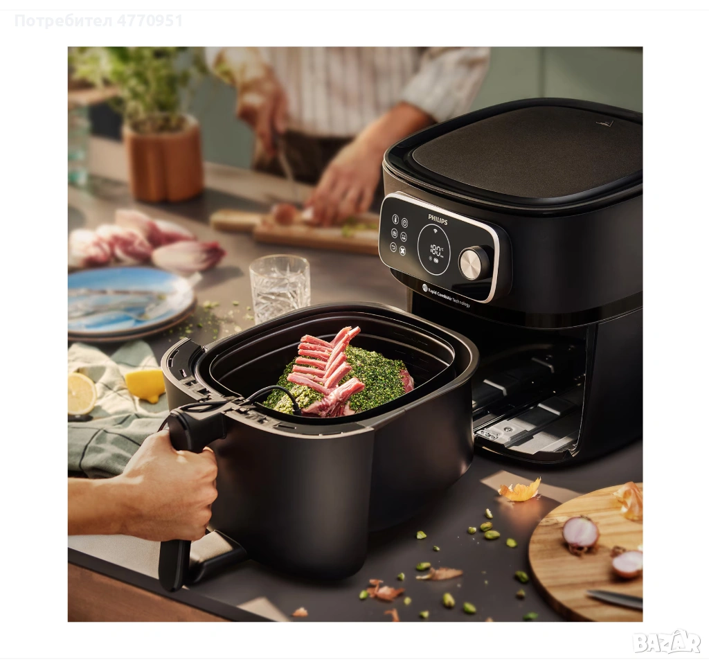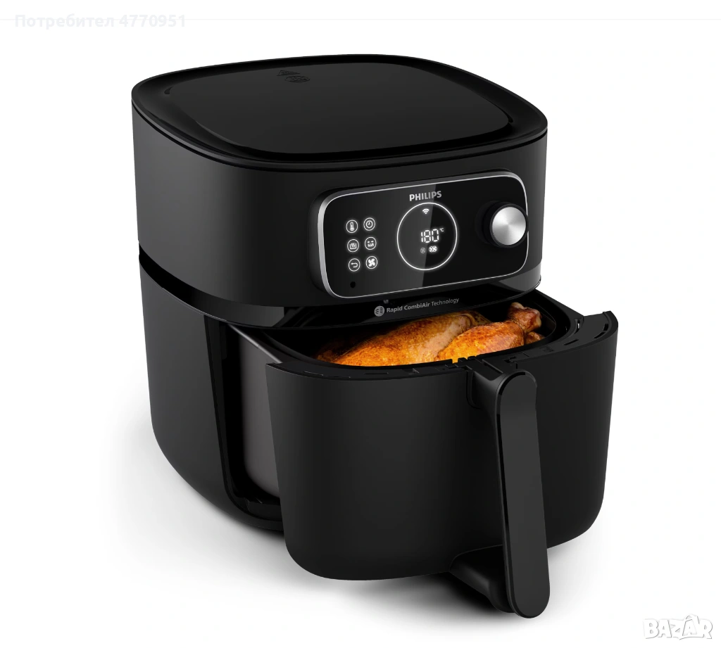 Philips HD9876/90 серия 7000 Combi XXL е компактен, мощен и многофункционален фритюрник с горещ въздух, който комбинира голям капацитет, богати режими на готвене и интелигентно управление – подходящ за ежедневна употреба и разнообразни рецепти.