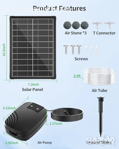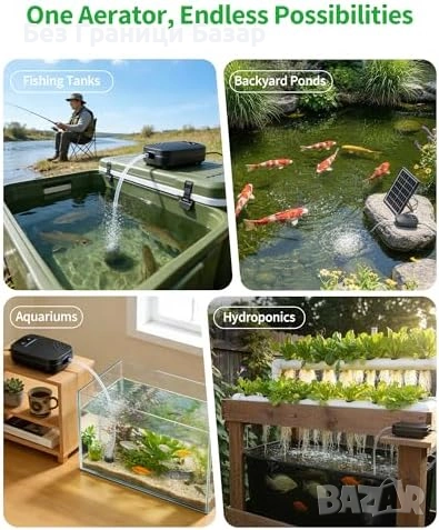 Нов аератор Соларна въздушна помпа за езеро аквариум 8W 4400mAh 3 режима