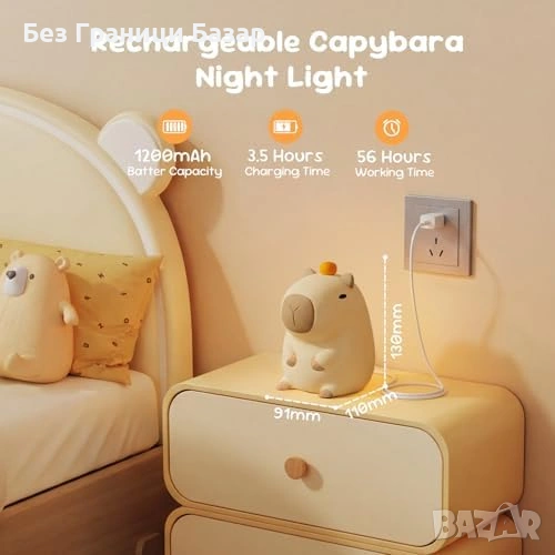 Нова Силиконова лампа капибара LED за деца стая с таймер и 2 светлини