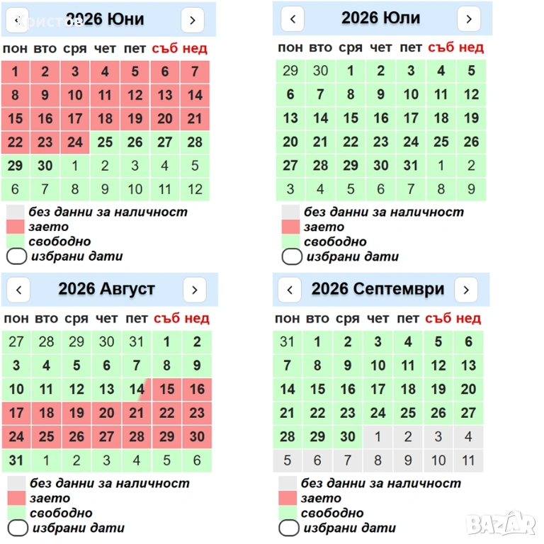 Свободен за нощувки от 25.06.2026г.