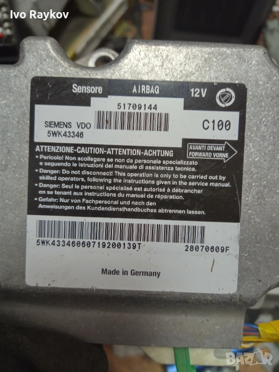 Модул Airbag 1.9 JTD за Fiat STILO , 51709144 , 5WK43346, снимка 1 - Части - 53914645 Модул Airbag 1.9 JTD за Fiat STILO , 51709144 , 5WK43346, снимка 2 - Части - 53914645 Модул Airbag 1.9 JTD за Fiat STILO , 51709144 , 5WK43346, снимка 3 - Части - 53914645 Модул Airbag 1.9 JTD за Fiat STILO , 51709144 , 5WK43346, снимка 4 - Части - 53914645 1/4