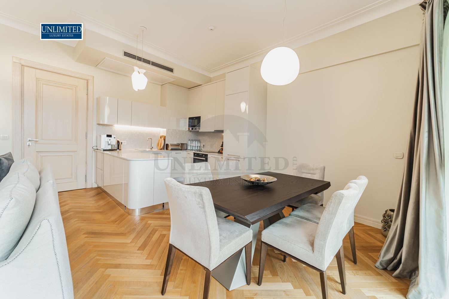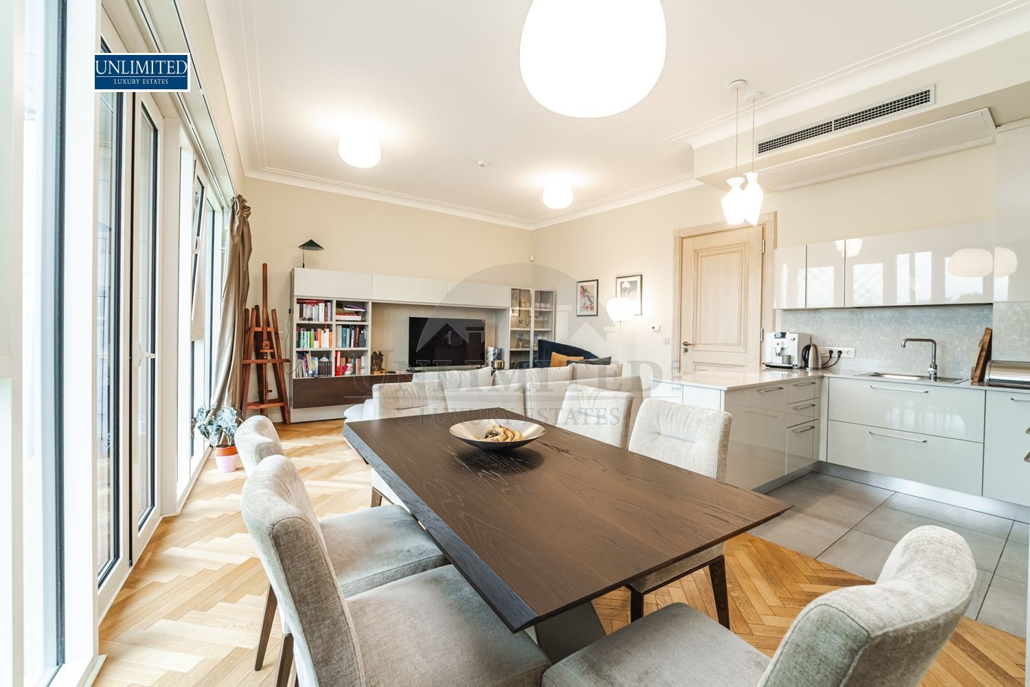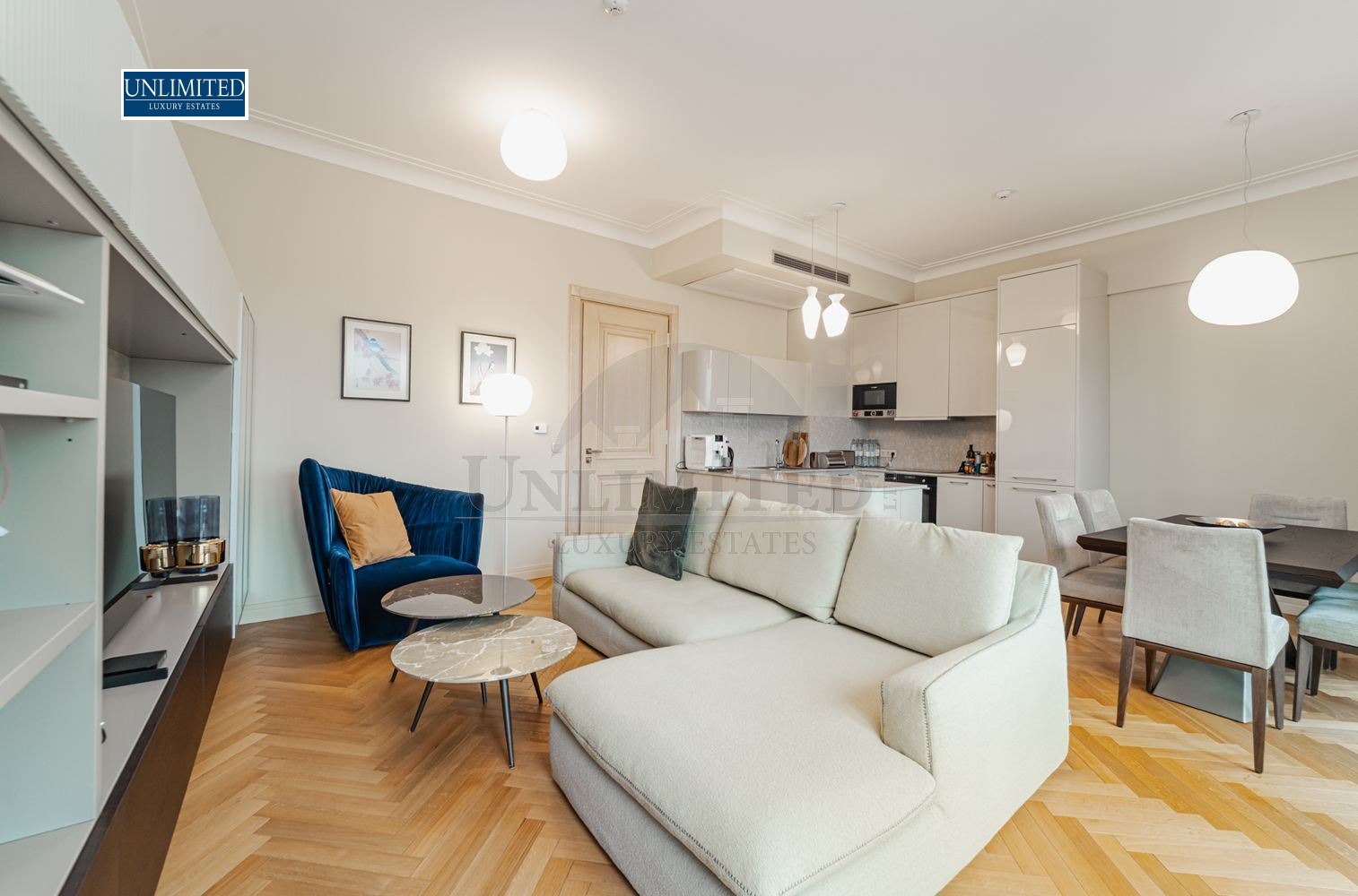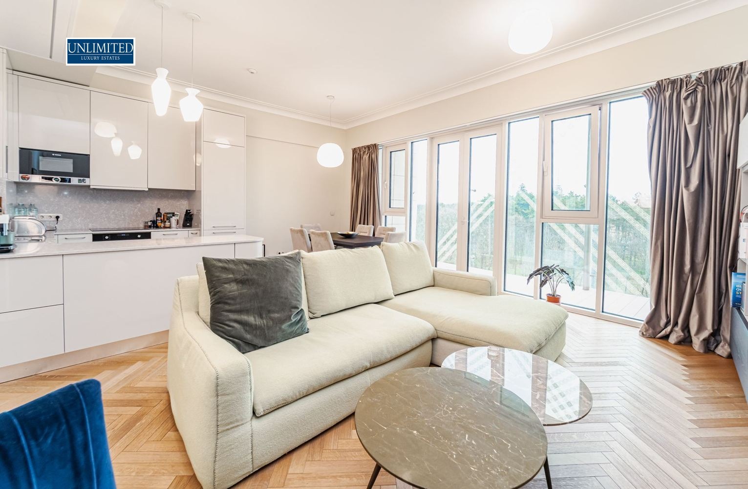 Living Area: An expansive open-plan living room featuring a dining area and a high-end kitchen perfect for entertaining.