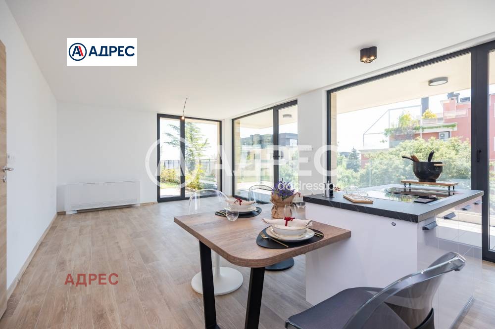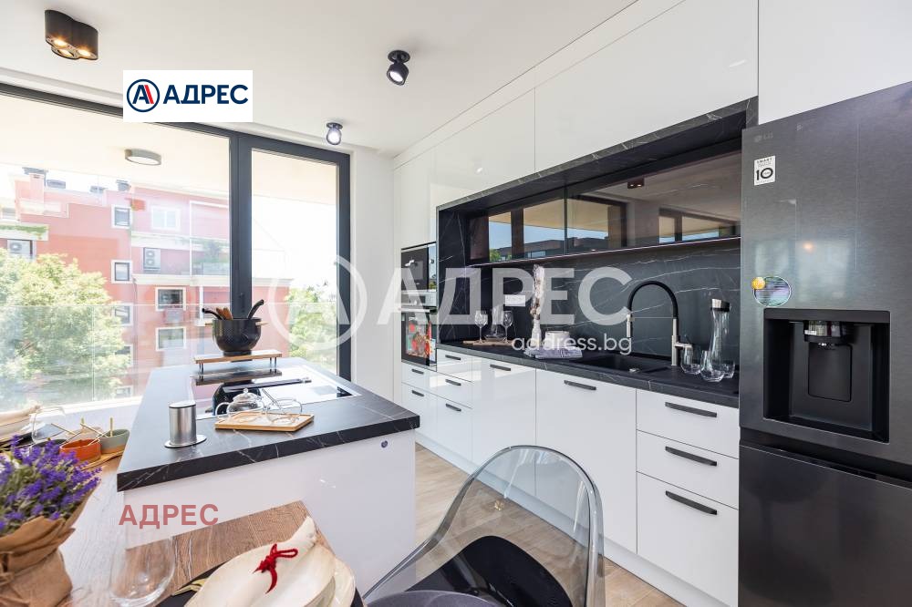 Кухнята е напълно вградена, с дизайнерски аспиратор, интегриран в работния плот, и оборудвана с електроуреди от най-висок клас, което я превръща в истинско удоволствие за готвене и ежедневна употреба.