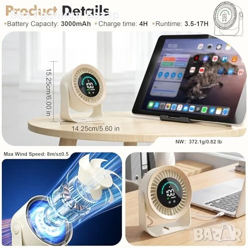 USB настолен вентилатор с LED дисплей за скорост и батерия