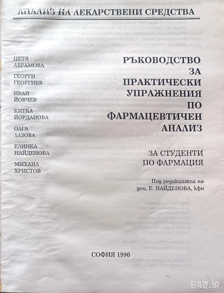Ръководство за практически упражнения фармацевтичен анализ за студенти по фармация 1996 година