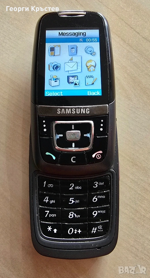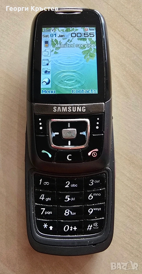 Samsung D600e - телефона се включва и работи, но е кодиран, тестван с А1, нямам друга за проба, зарежда си батерията, която може би е ОК, но едното краче е счупено, и не стои плътно, но е ОК, телефона не прекъсва, няма БГ меню, клавиатура, подсветка и камера са ОК, активен и стегнат слайд, добър външен вид, без зарядно.