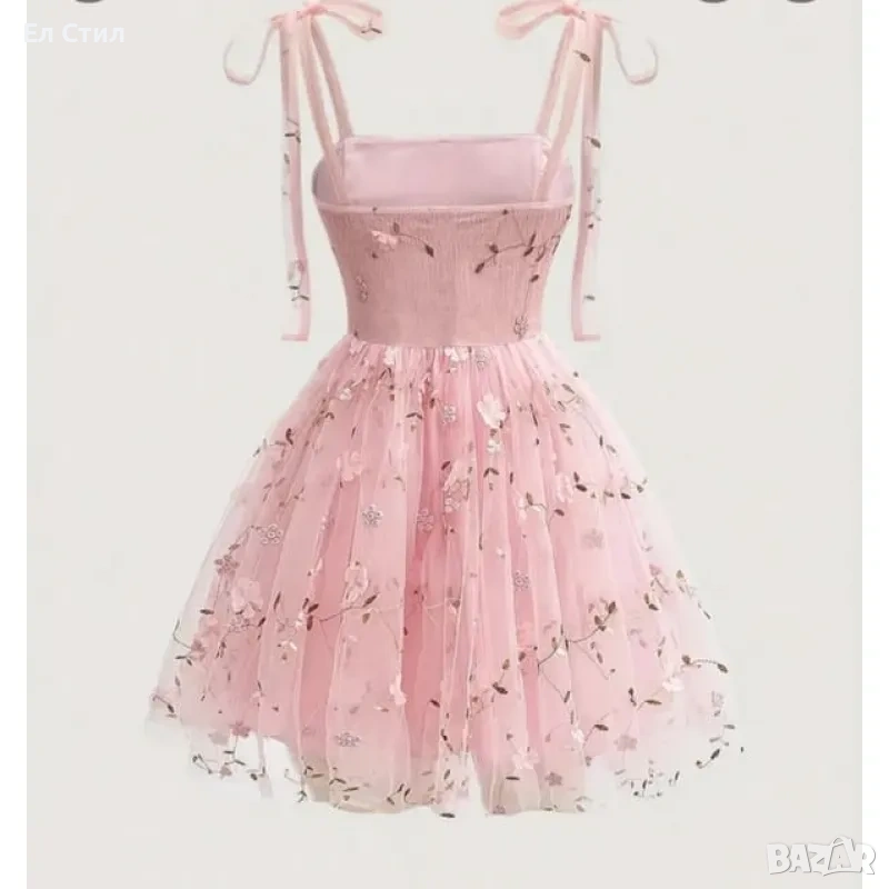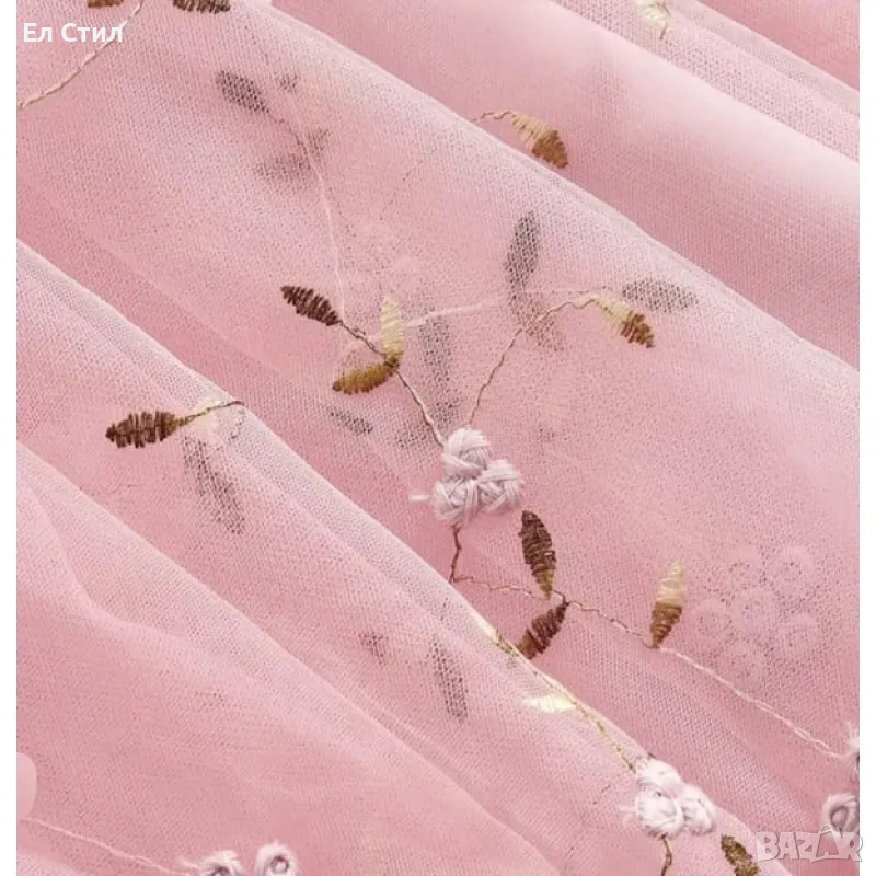 дамска официална рокля от нежен тюл /мрежа/ с бродирани малки цветя