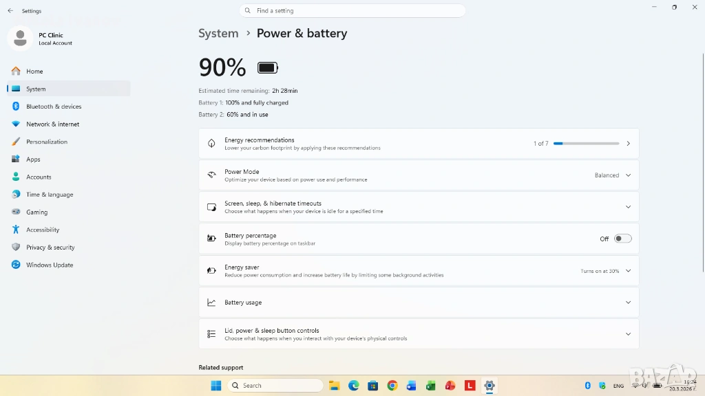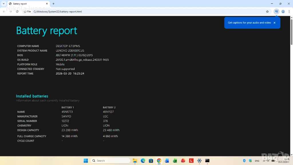 Батерии - две налични батерии, едната е 14.3Wh, другата е 4.8Wh (издържа около 4 часа според натоварването).