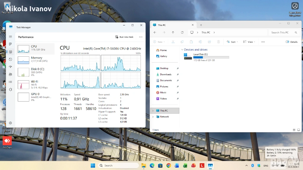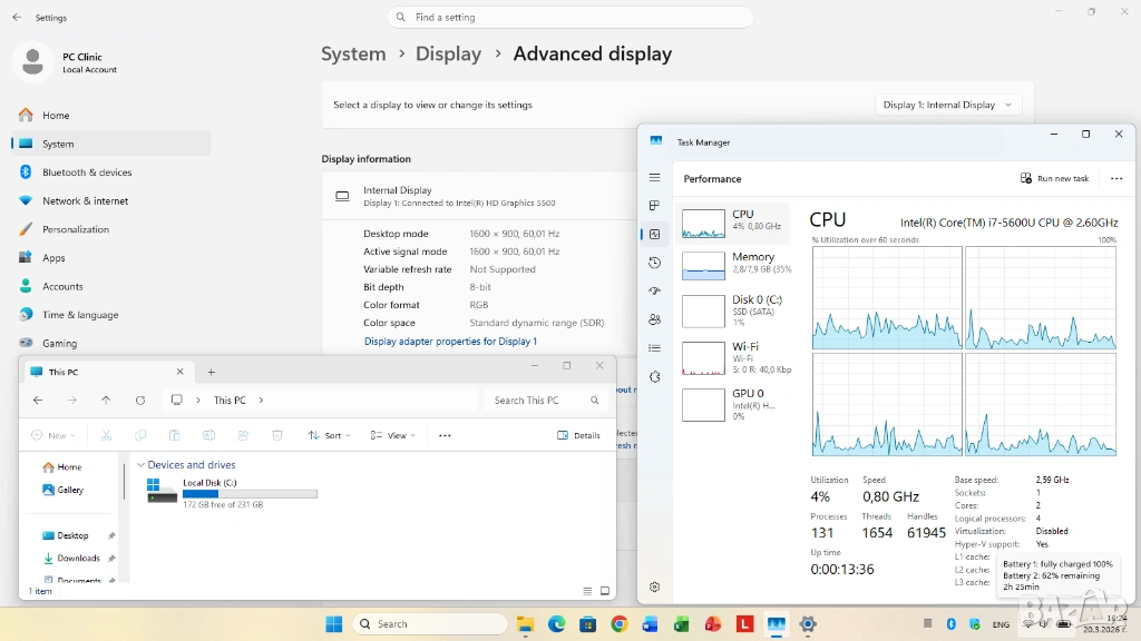 Лаптопът е профилактиран, почистен и със сменена термо паста.