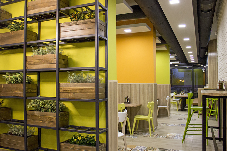 Разпределението включва просторна търговска зала, позволяваща удобно разполагане на клиентите, напълно оборудвана кухня с професионална техника, бар плот, санитарни помещения и складови площи.