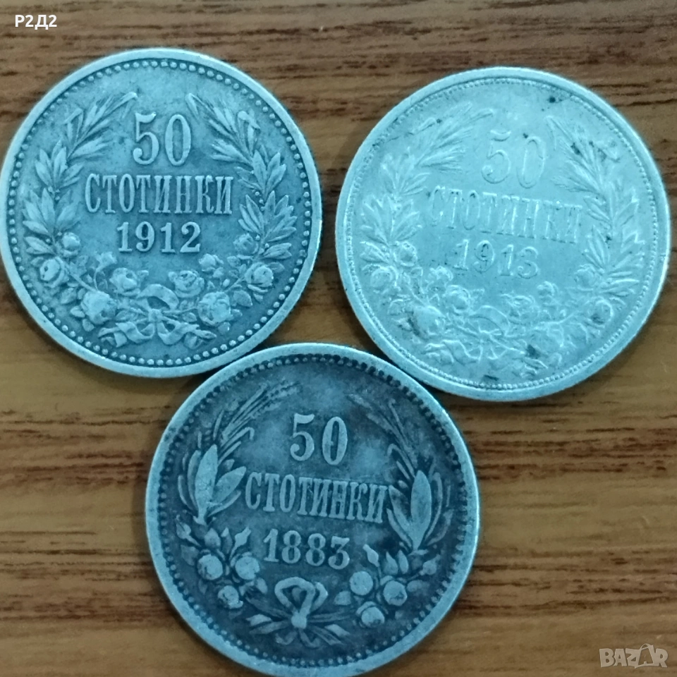 Три стари сребърни монети 50 стотинки. Цената е обща!