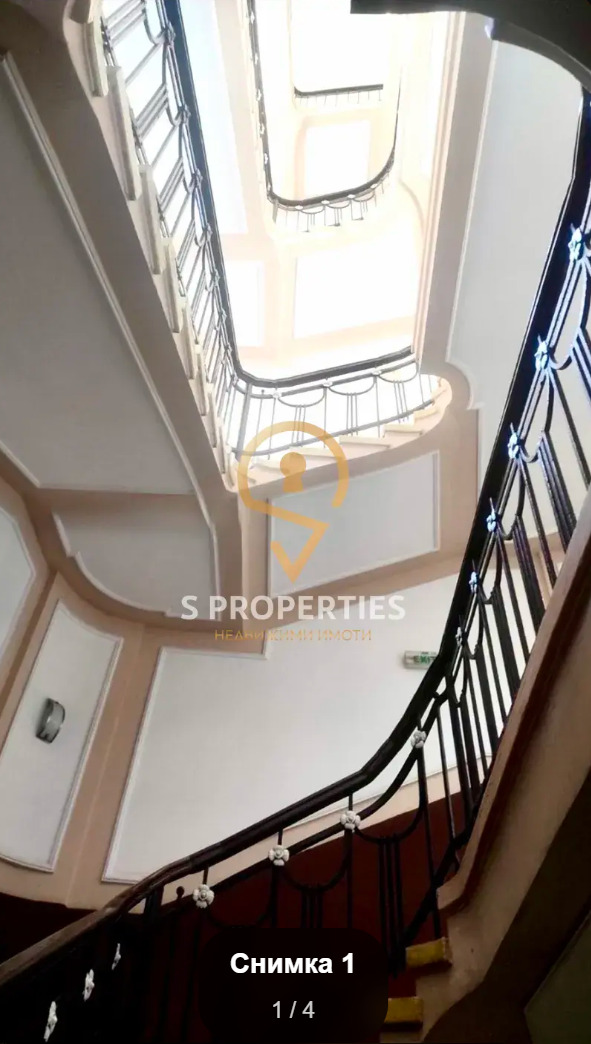 Тази именита постройка е застроена върху 340кв.м. парцел и е с обща разгъната площ от 1700кв.м. Състои се от партерен етаж с междинно ниво, три етажа с височини от 3.25м. и 5ти тавански етаж с височини от 1.80м до 5м., както и сутерен (който не е включен в представеното РЗП). Сградата е в отлично състояние и в момента се ползва от банка. Имотът е подходящ, както за многофамилна жилищна сграда, така и за административна сграда, хотел, клиника, консулство, детска градина, училище и други. Всеки етаж разполага с обособени кабинети и конферентни зали, като площта е по 300 кв.м. Има възможност да се изгради асансьор при необходимост. Върху обявената цена НЕ се начислява ДДС.