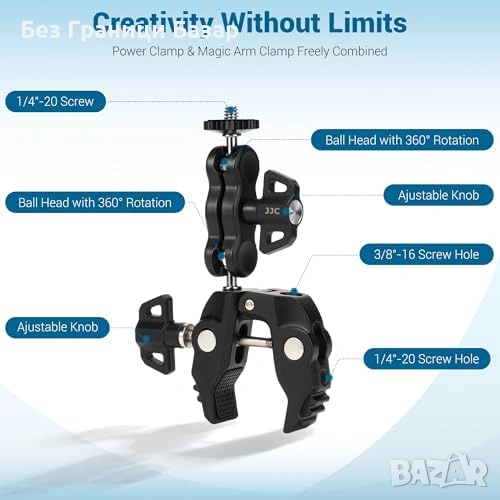 Нова Щипка JJC с magic arm за телефон, камера и екшън камера GoPro Insta360