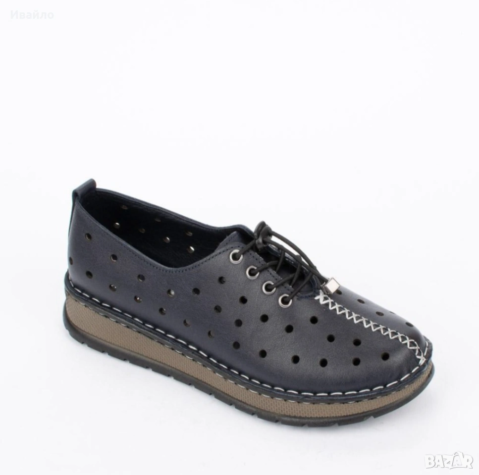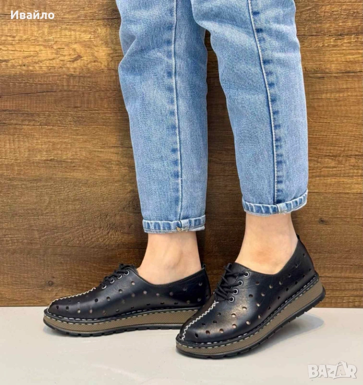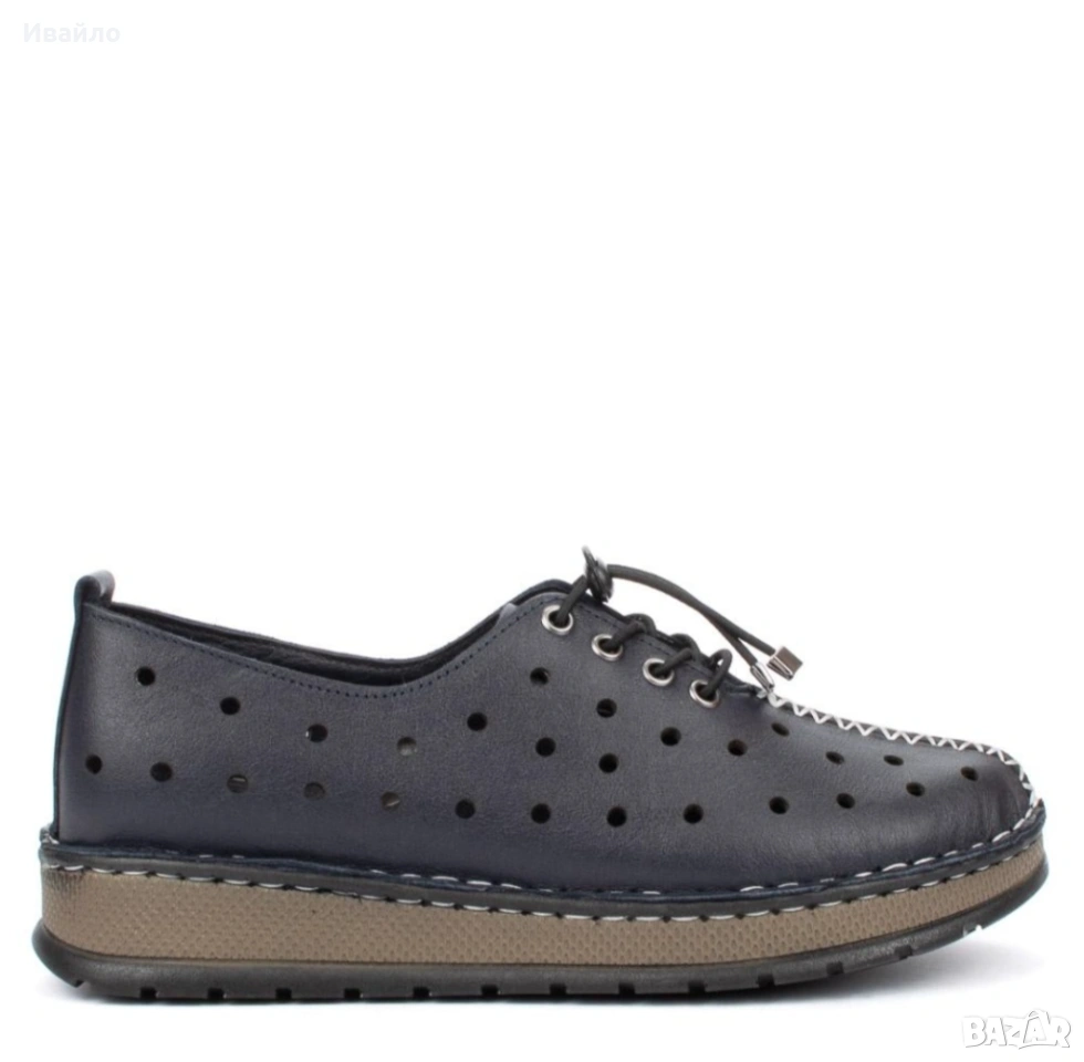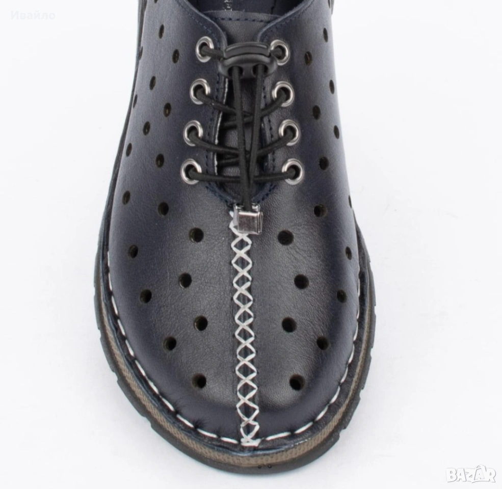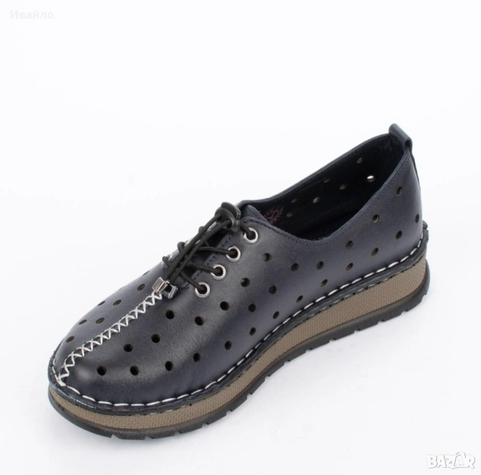 Горната част е от висококачествена естествена кожа, която осигурява мекота, устойчивост и отлично прилягане към крака. Перфорацията по повърхността не само добавя интересен визуален акцент, но и гарантира добра вентилация, което прави обувките изключително подходящи за топлите месеци.