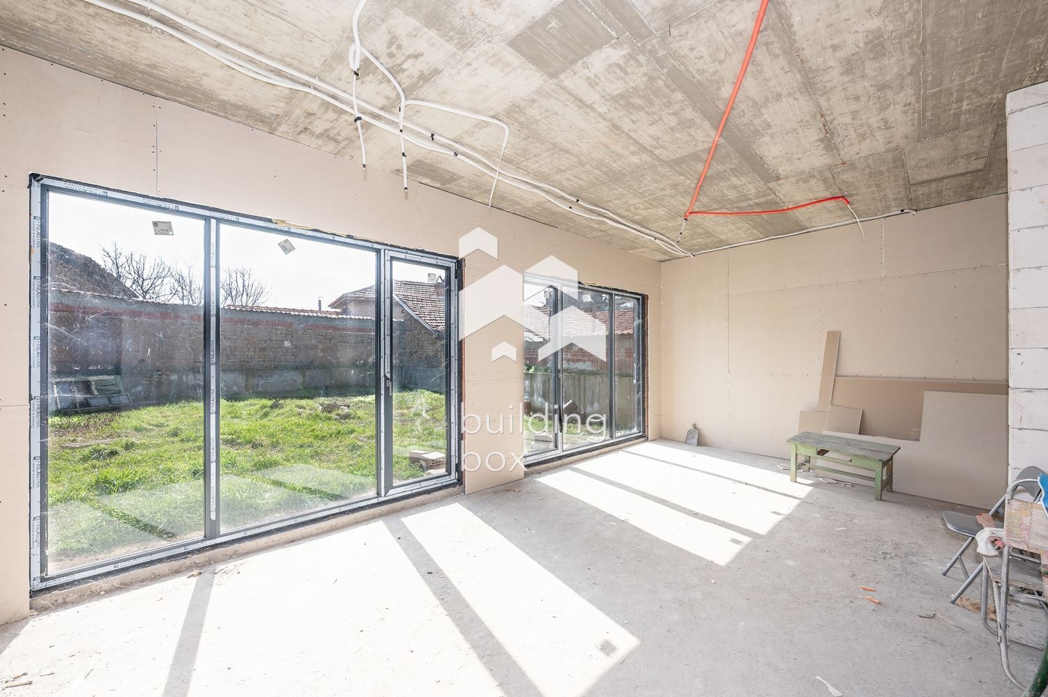 Имотът е в процес на ремонт нов покрив, алуминиева дограма и поставен гипсокартон, което позволява нанасяне след довършване и обзавеждане по вкус на новите собственици. Къщата предоставя възможност за индивидуално интериорно решение.