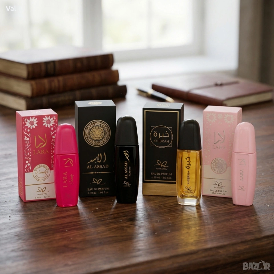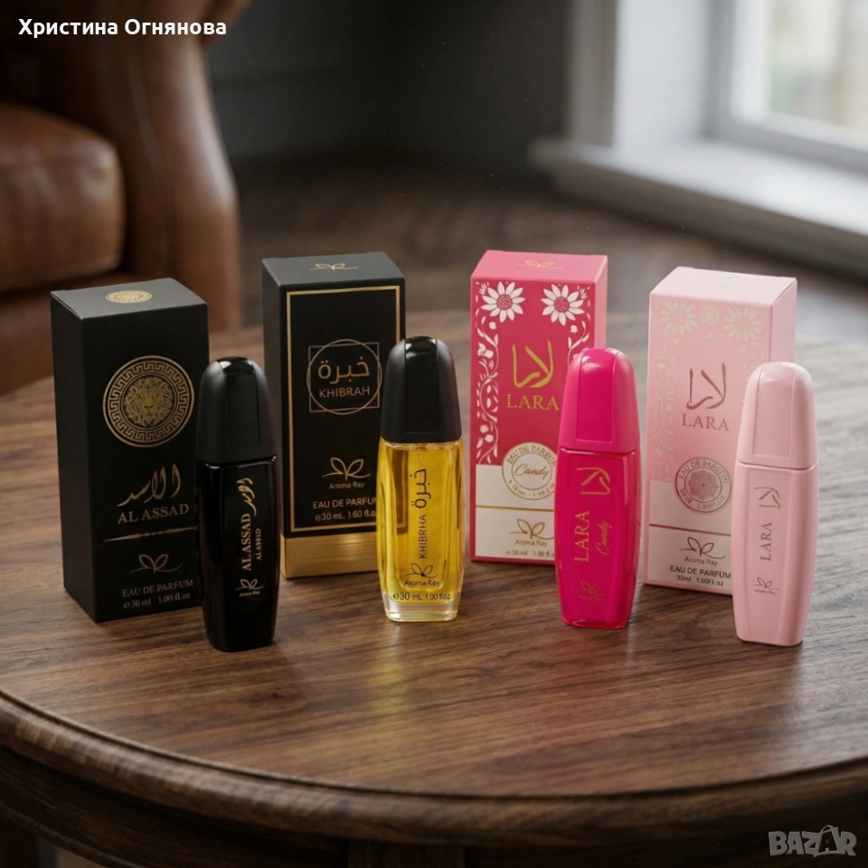 Луксозен комплект арабски парфюми 4x30 мл – За него и нея, лукс, който се усеща Комплекта включва: Lara Pink - for woman 30ml Eau De Parfum, Lara Candy - for woman 30ml Eau De Parfum, KHIBRAH - unisex 30ml Eau De Parfum, AL ASSAD - for men 30ml Eau De Parfum.