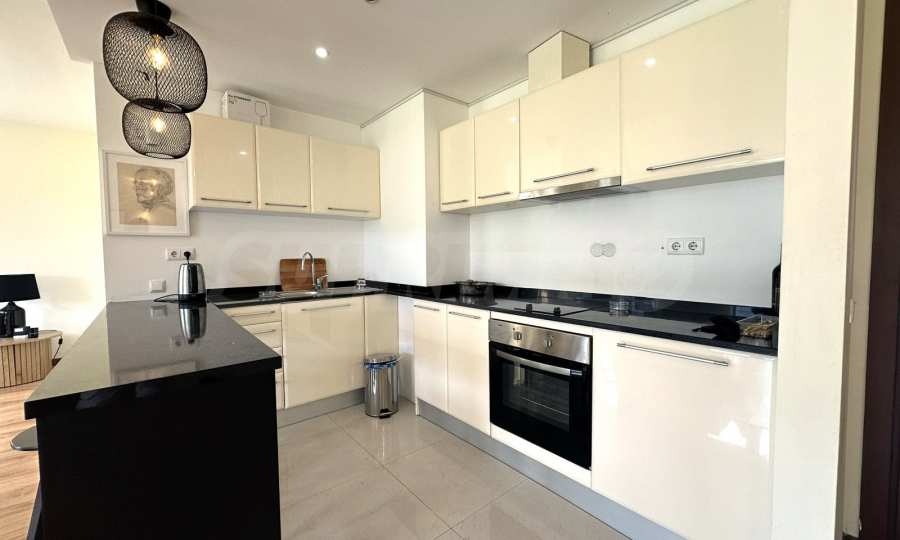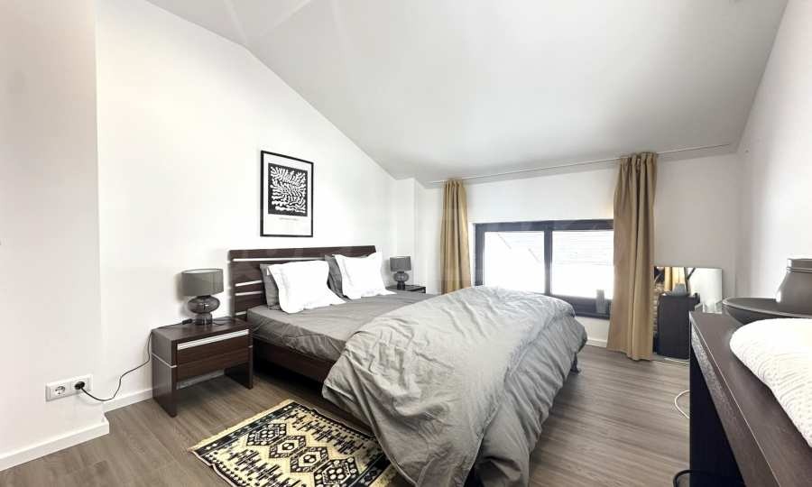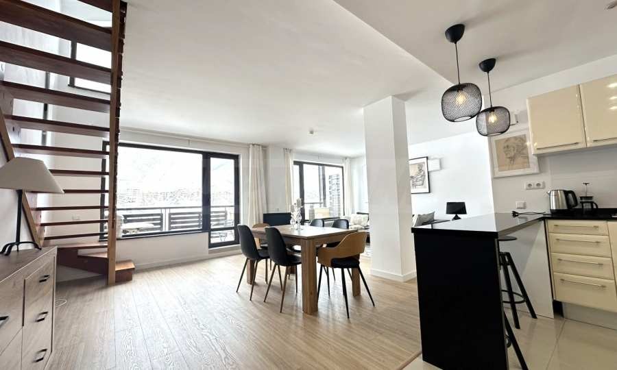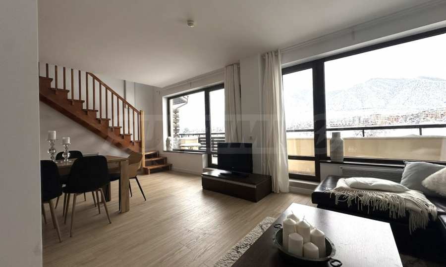 Апартаментът е напълно обзаведен и оборудван за живеене на две нива: