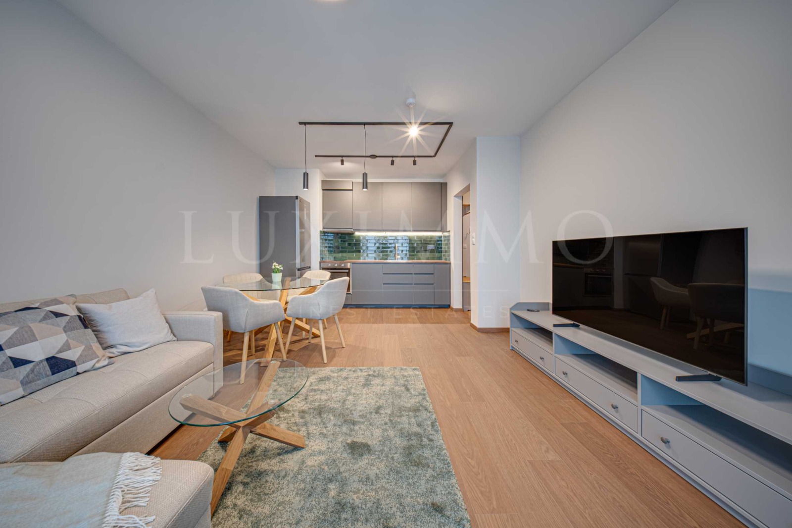 Обзаведен е с всички елекроуреди фурна и керамични котлони, абсорбатор, хладилник с фризер, пералня със сушилня.