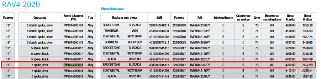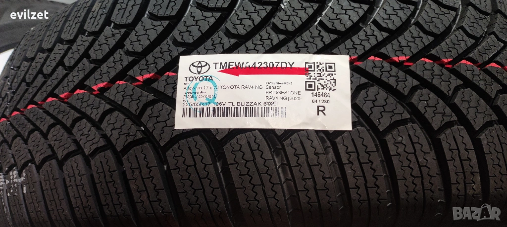 оригинален комплект на Тойота за РАВ 4 след 2020г (код TMEWA42307DY) лети джанти 17“, вентили с датчици за налягане