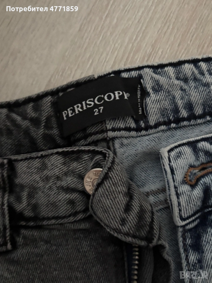Двуцветни дамски дънки в размер С, леко са широки, носени са , но са в перфектно състояние без нито 1 забележка!