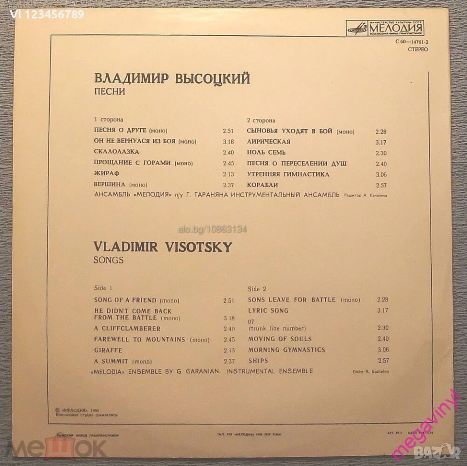 плоча - Владимир Высоцкий Мелодия C 60-14761-2 - 1980
