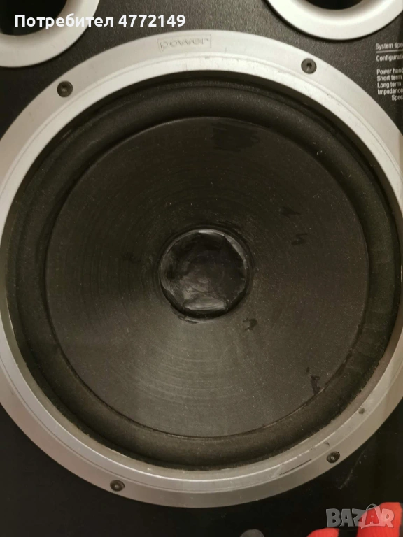 По басовите говорители има видими козметични следи в централната част (смачкани капачки и петна/зацапвания), които са съобразени с цената.