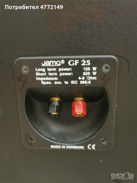 Jamo GF 25. Колоните са изключително мощни, с 12-инчов бас и хорна за високите честоти. Свирят много силно и са подходящи за големи помещения.