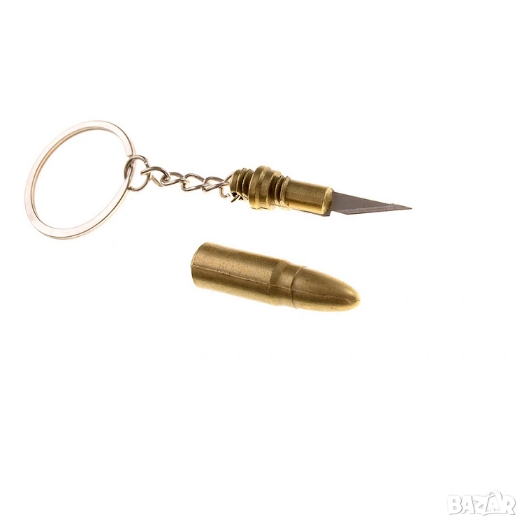 Уникален ключодържател патрон със скрит мини нож - метален, златист, снимка 1 - Други - 53916819  Уникален ключодържател патрон със скрит мини нож - метален, златист, снимка 2 - Други - 53916819  Уникален ключодържател патрон със скрит мини нож - метален, златист, снимка 3 - Други - 53916819 1/3