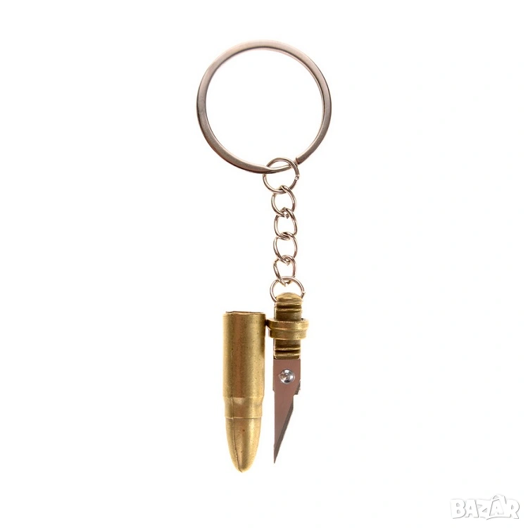 Уникален ключодържател патрон със скрит мини нож - метален, златист → Обява 53916819