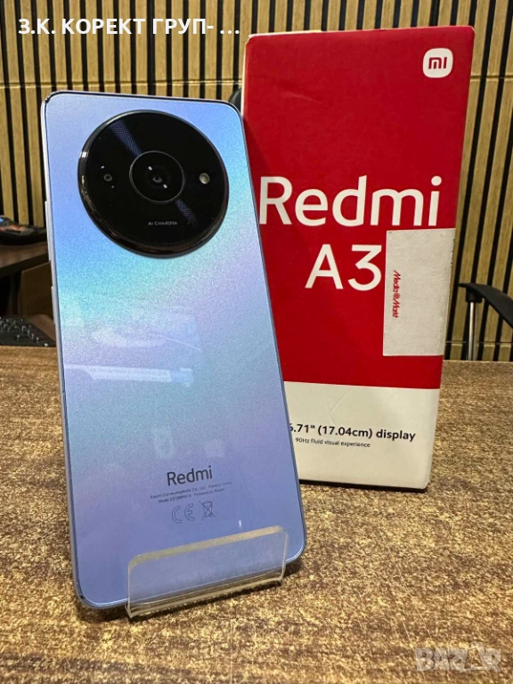 Продавам Redmi A3 с вътрешна памет от 64gb. Телефона работи отлично и без проблеми. В горния десен ъгъл на корпуса има лека забележка ( вижда се на снимката ). Продава се с кутия към него ( без кабел ).