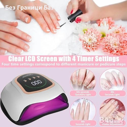 Нова 300W UV LED лампа за нокти 7гел лак 2 диода LCD дисплей 4 таймера