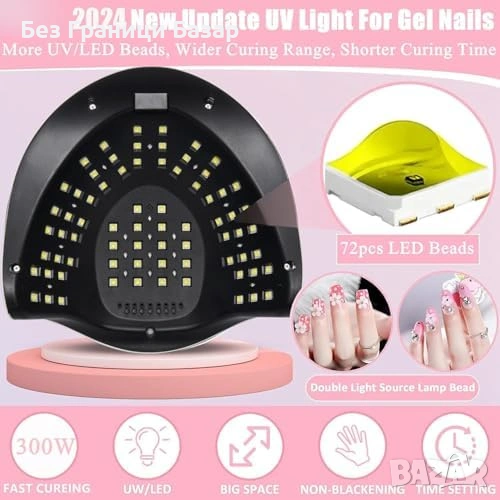 300W UV LED лампа за бързо и равномерно изпичане на гел лак
