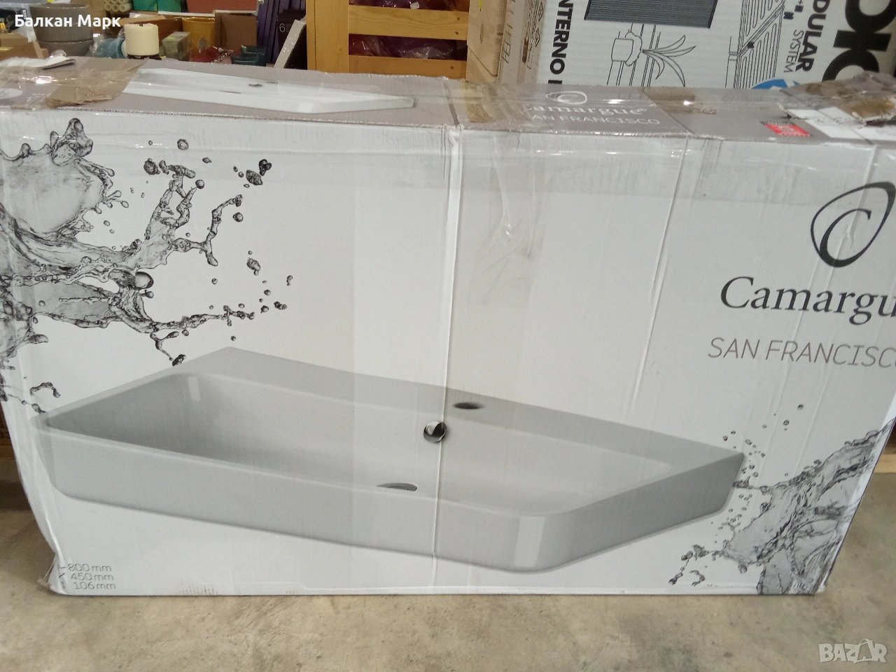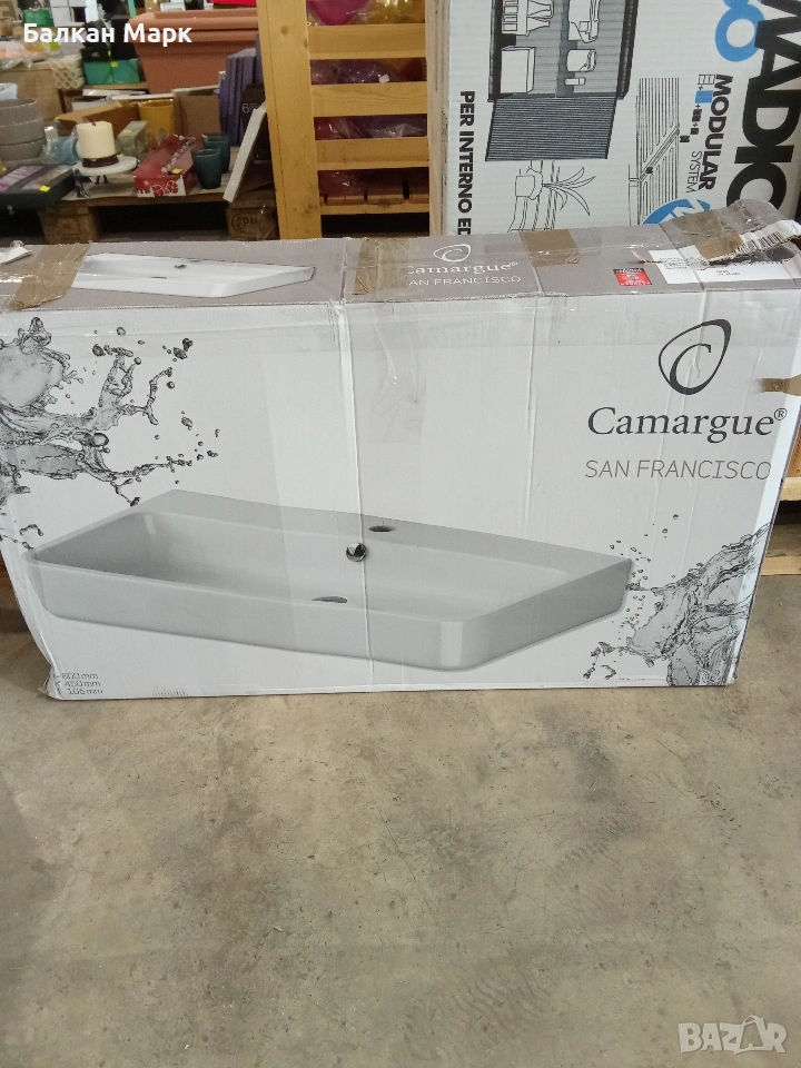 Продавам умивалник за баня от серията San Francisco на Camargue, голям модел с ширина 80 см. Мивката е в оригиналната опаковка, но за съжаление при транспортиране е получена пукнатина (показана на снимките). Продуктът никога не е използван.
