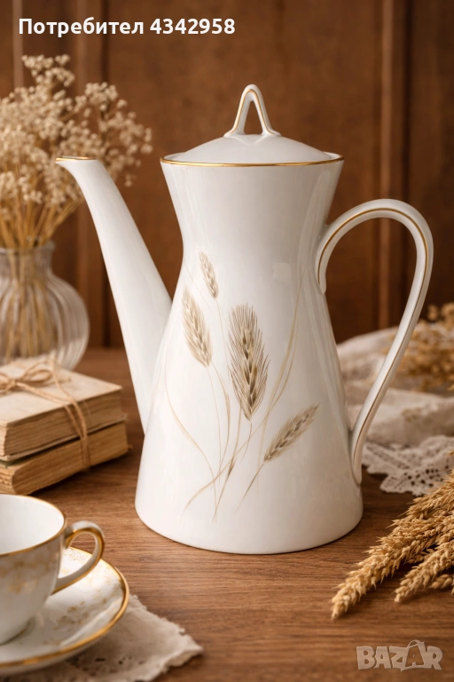 ✔ Фин минималистичен дизайн с декор житни класове и златен кант