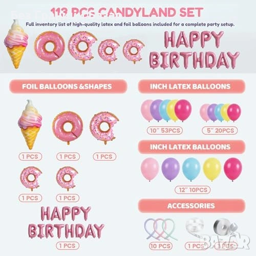 Нов комплект украса Пастелни балони HAPPY BIRTHDAY арка за рожден ден 113 части