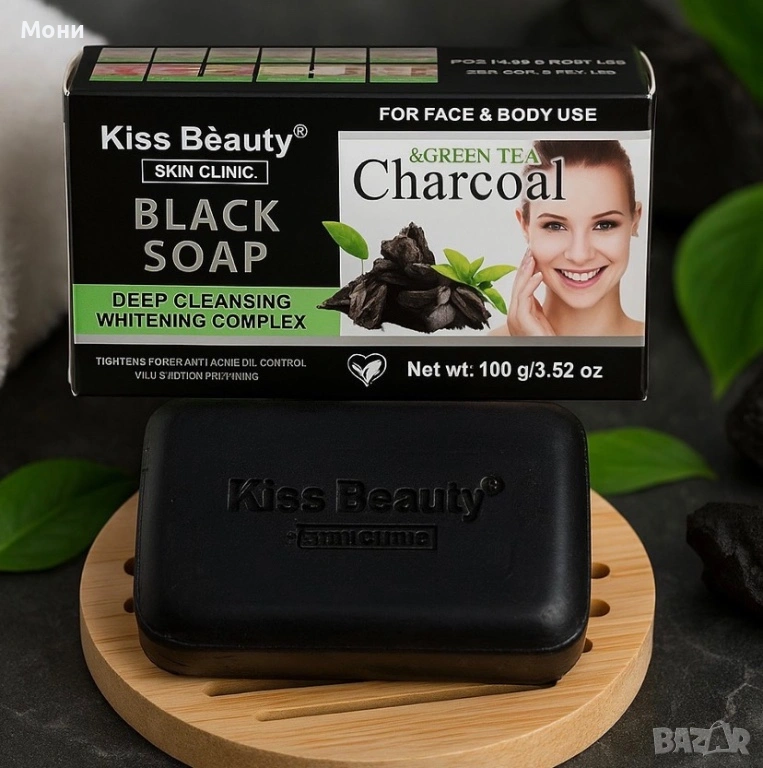Сапун за лице и тяло с активен въглен и зелен чай – Kiss Beauty Black Soap → Обява 53917752