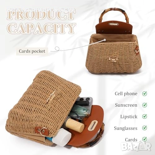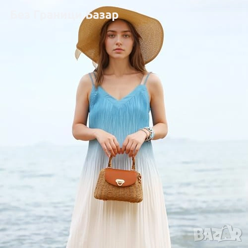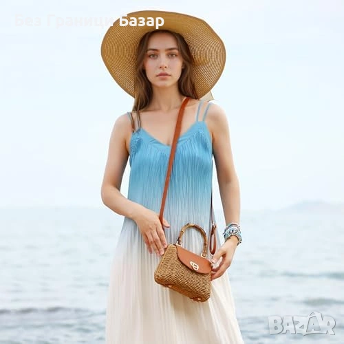 Ново дамска Бохо плетена чанта тип кошница за плаж почивка и пътуване