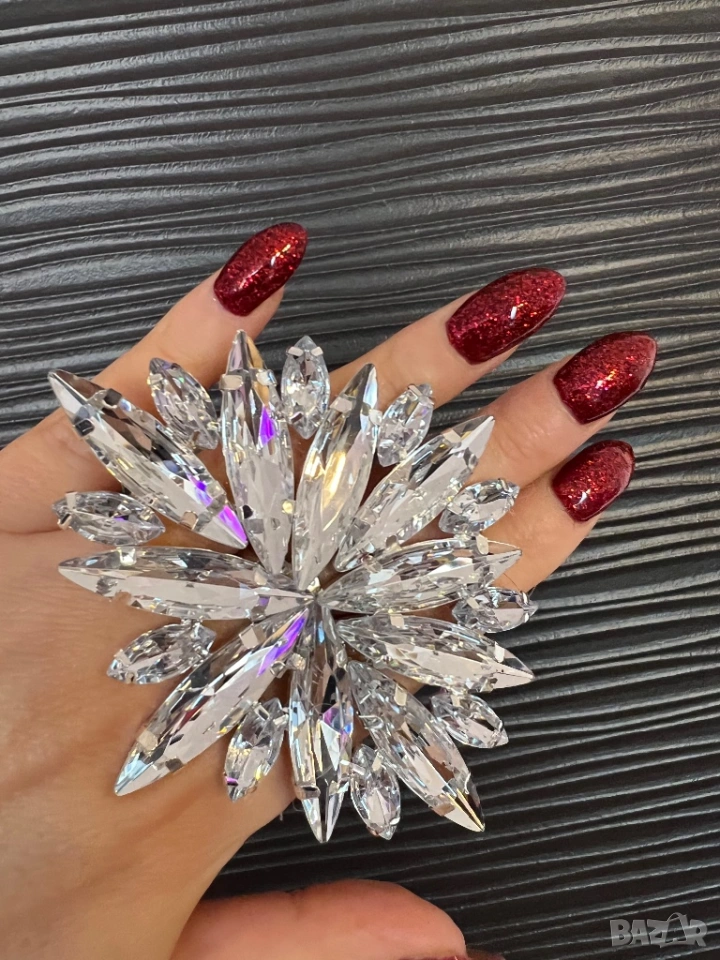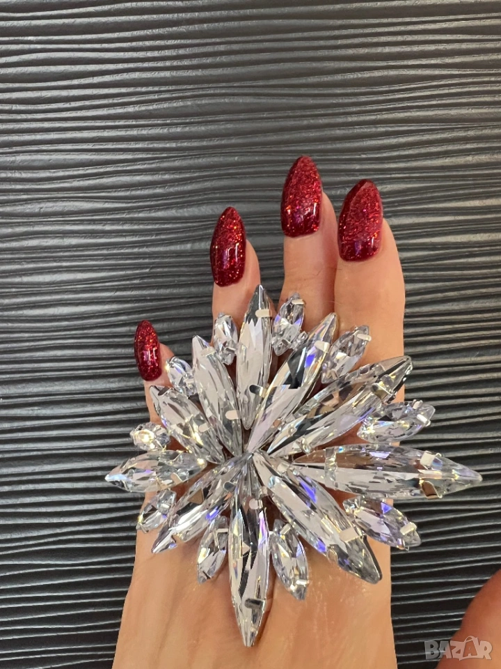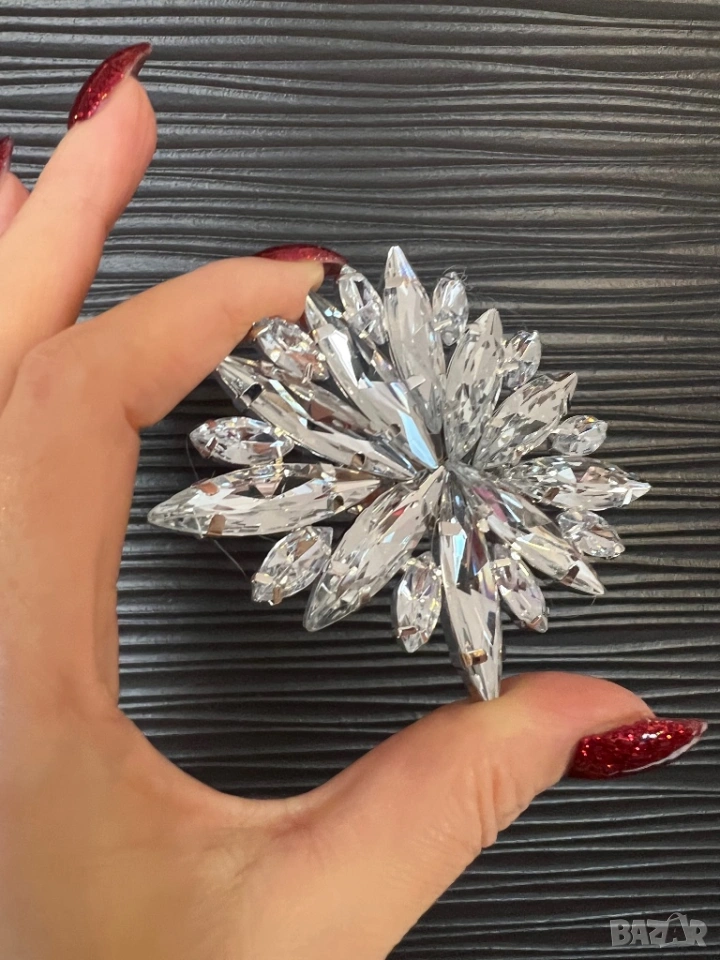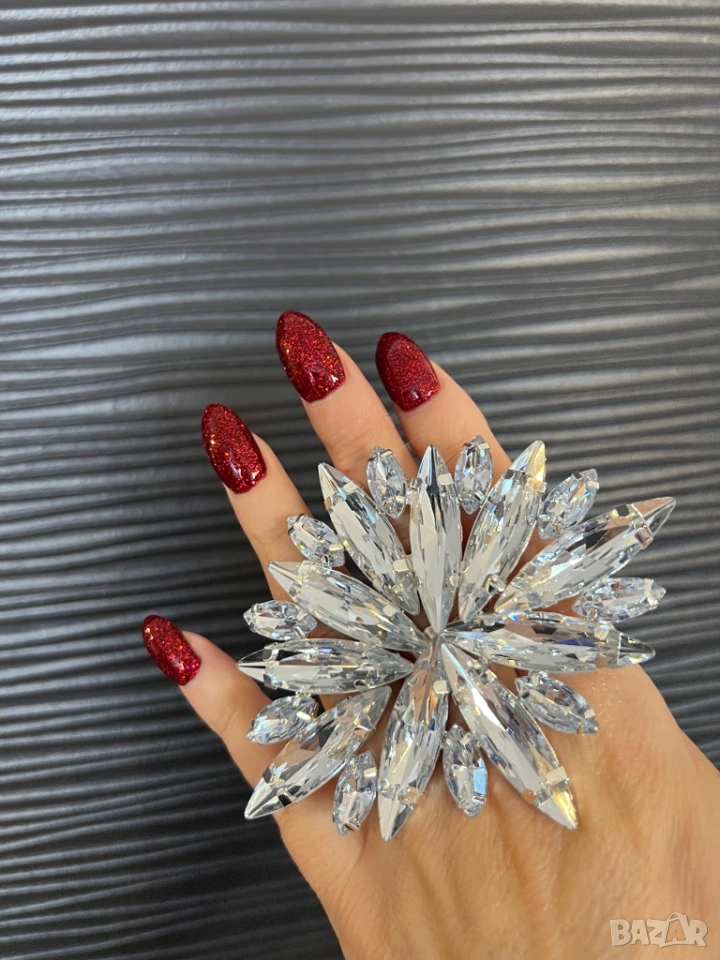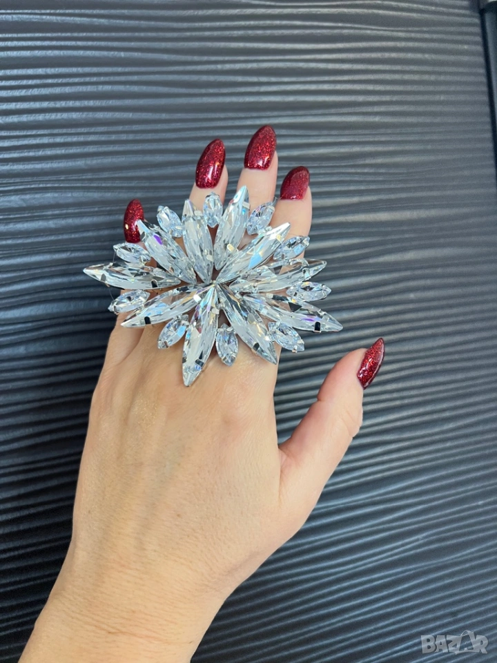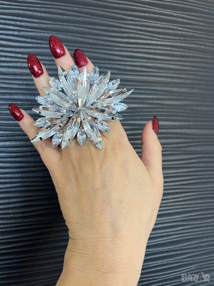 Уникален масивен пръстен с кристали. С опция да разширяване. Блестящо кристално цвете, прекрасен акцент за вечерната рокля.Цена 13€.