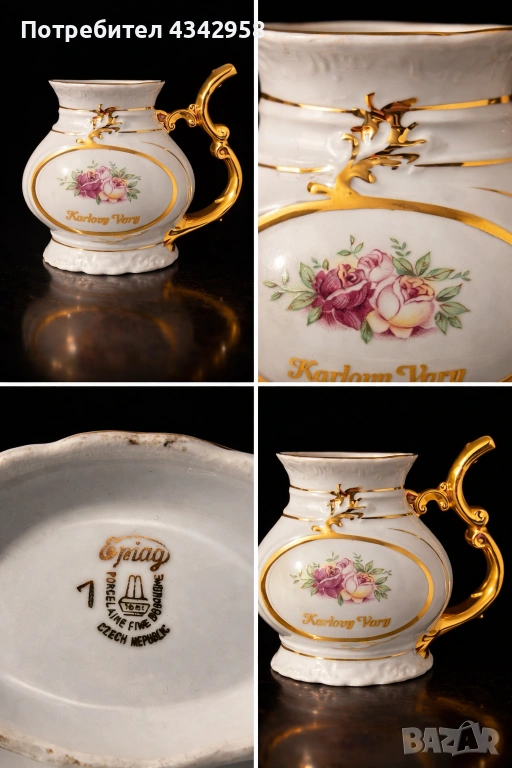 Луксозен винтидж порцелан Bohemia Karlovy Vary – златен декор и ръчна изработка