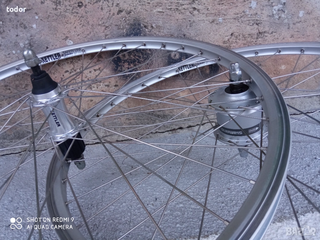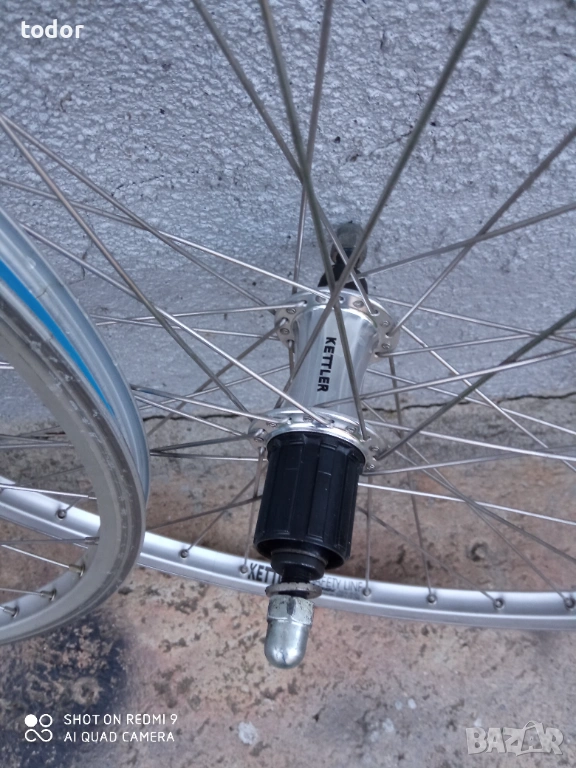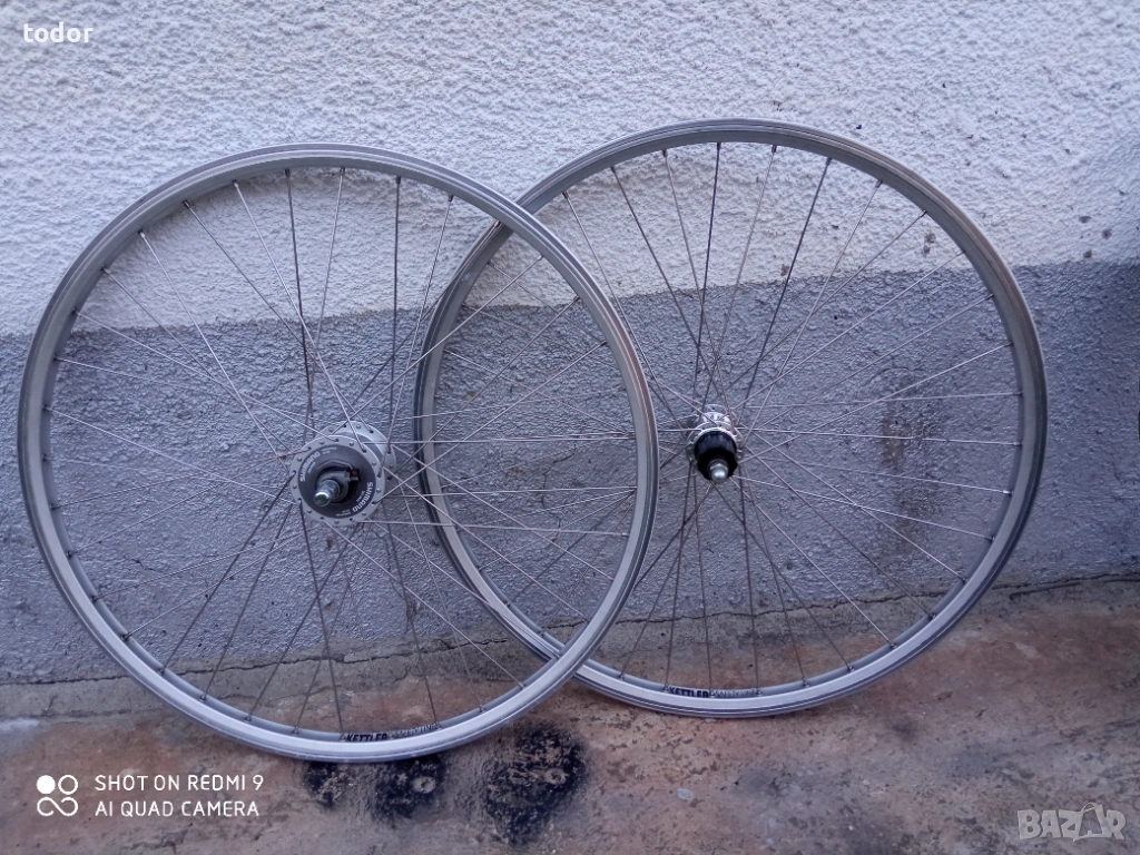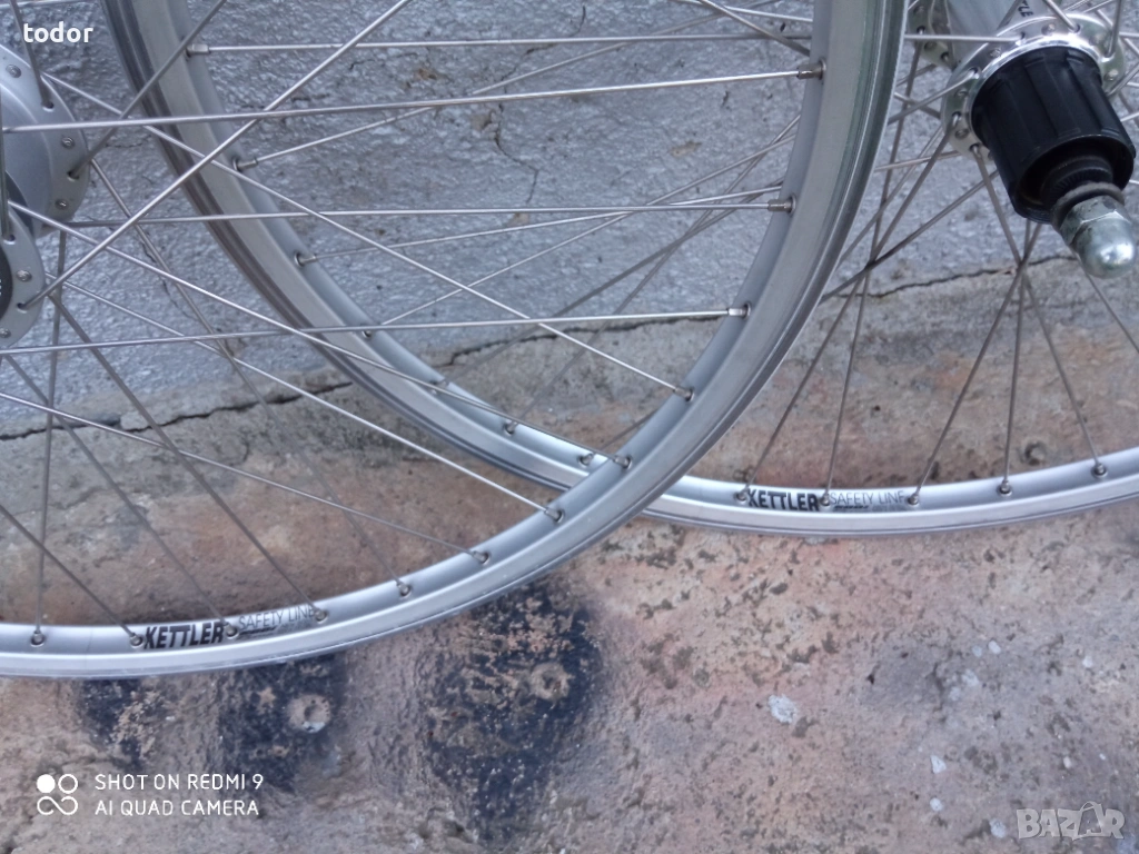 нови усилени двойностенни немски капли кетлер , 26 цола. предна с динамо главина и задна свободен венец на шлици с капсоловани лагери . нераждаеми спици .