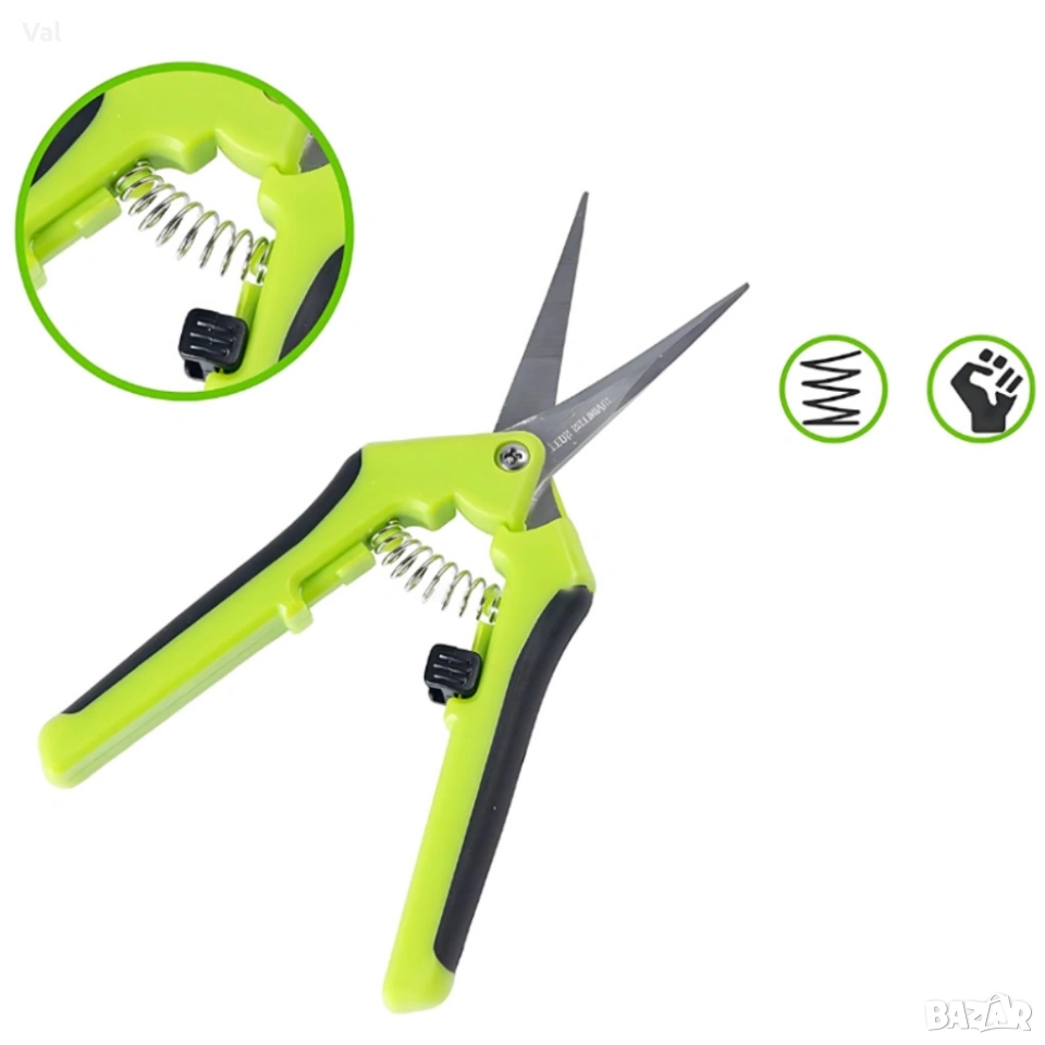 Градинска ножица с пружинен механизъм и ергономични дръжки - лека и удобна