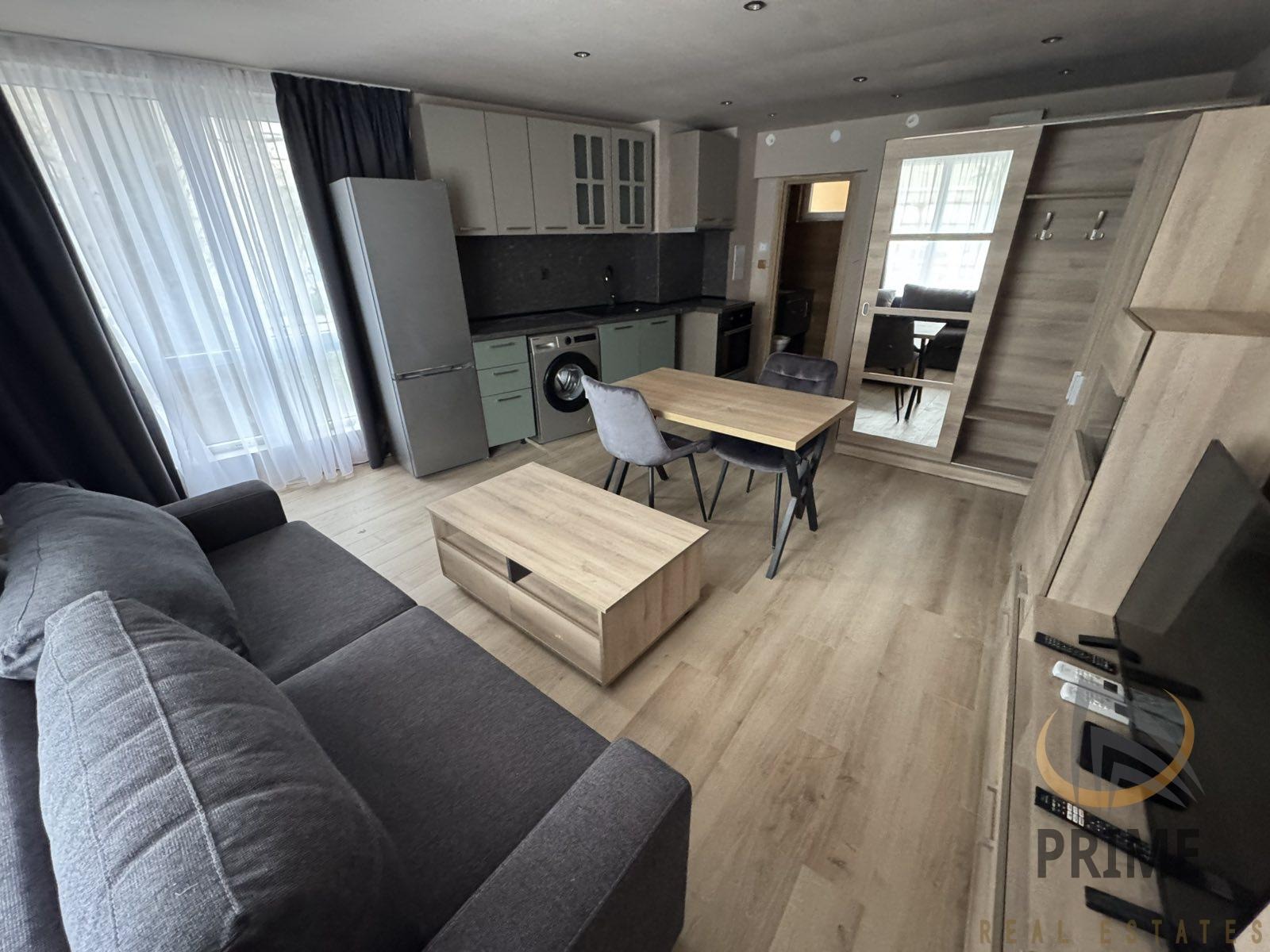 Модерно обзаведен двустаен апартамент под наем, разположен в центъра на кв. Сарафово. Разположен на партерен етаж в нова сграда.