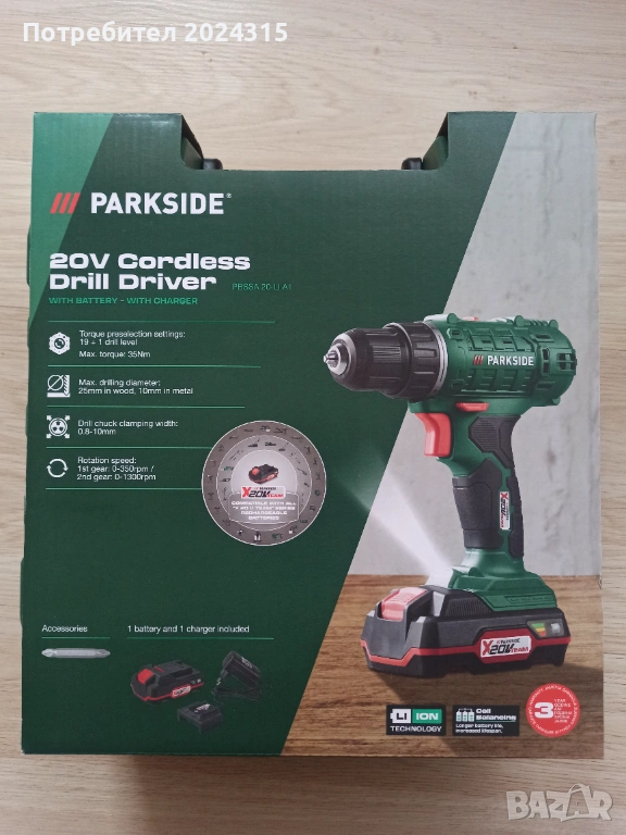 Продавам чисто нов винтоверт Parkside 20-Li A1 в комплект със зарядно и батерия 20 V, с касова бележка и гаранция.