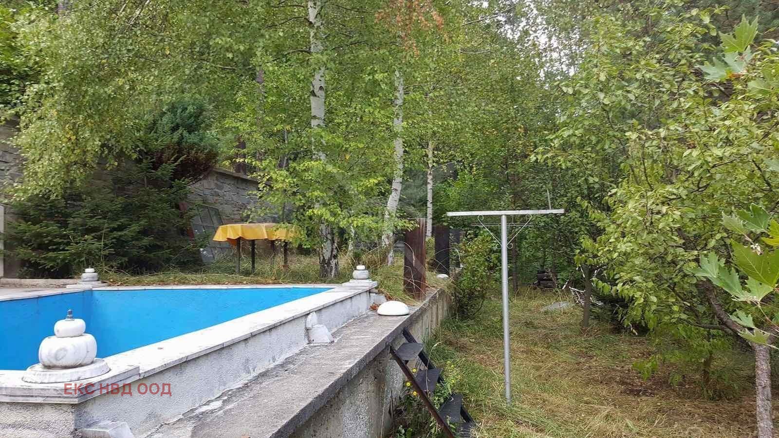 РАЗПРЕДЕЛЕНИЕ: Парцелът е с обща площ от 2394., разполага с масивни постройки, басейн, беседка, градина, към която се достига по декоративни стълби.