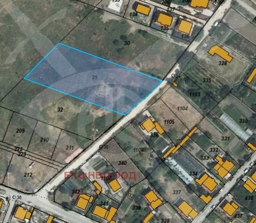 РАЗПРЕДЕЛЕНИЕ: Имота разполага с площ от 3999кв.м., с правила форма и лице 45м, до ток и вода, в съседство с къщи от отсрещната страна на улицата и на 40м от другата страна на парцела.