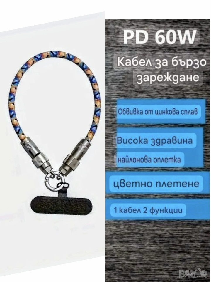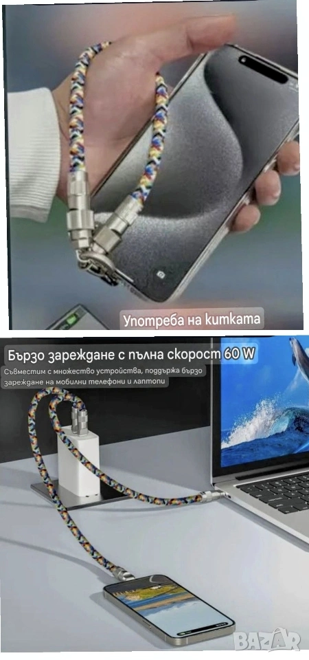 Кабел за зареждане и връзка за китка 2в1 → Обява 53920060