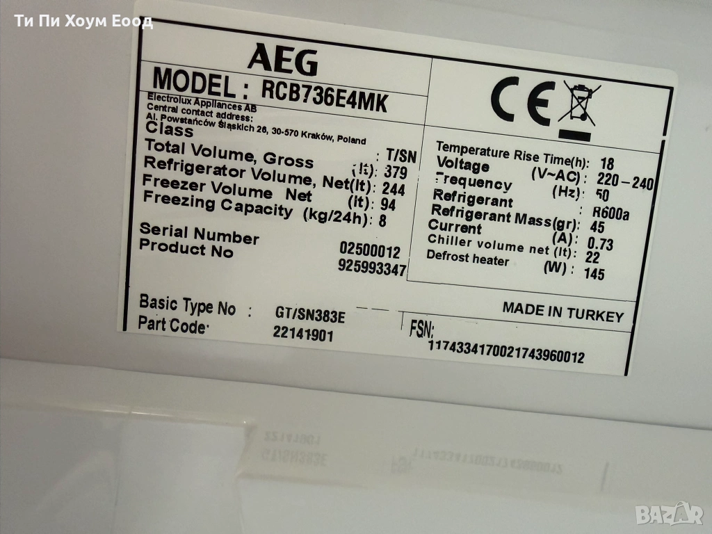 полезен обем на фризера - 101 литра