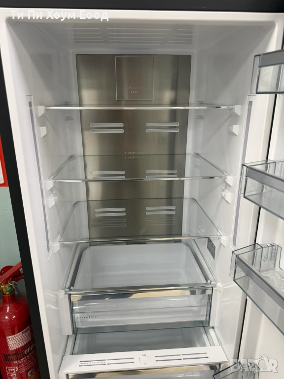 охлаждане 360° - хладилникът използва система за постоянна циркулация на охладения въздух във всеки един ъгъл, запазвайки вкусовите и хранителните качества на продуктите. В същото време изадната стена от неръждаема стомана възстановява температурата след отваряне на вратата