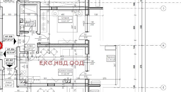 РАЗПРЕДЕЛЕНИЕ: Разполага с площ от 72кв.м. Състои се от: хол и кухня , спалня - , баня и тоалетна, тераса.